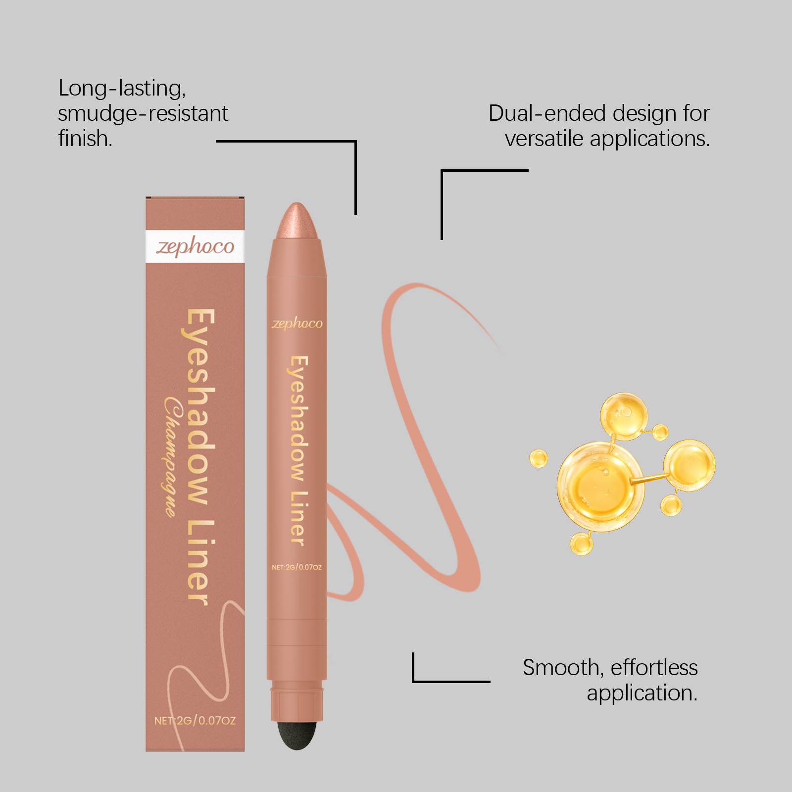 Our 2-in-1 eyeliner pencil is carefully formulated with mineral oil and white beeswax. It's designed to create beautiful, sophisticated, and luminous eye makeup, helping to enhance the dimensionality of your eyes. It's incredibly easy to use: 1. Use the pen tip to draw a line along your eyelid. 2. Fill in any gaps in the eyeliner and apply a thin, even layer of eyeshadow. 3. Flip the pen to use the built-in blending tool for seamless blending. It's long-lasting and fade-resistant, and its gentle formula cares for the delicate skin around your eyes.