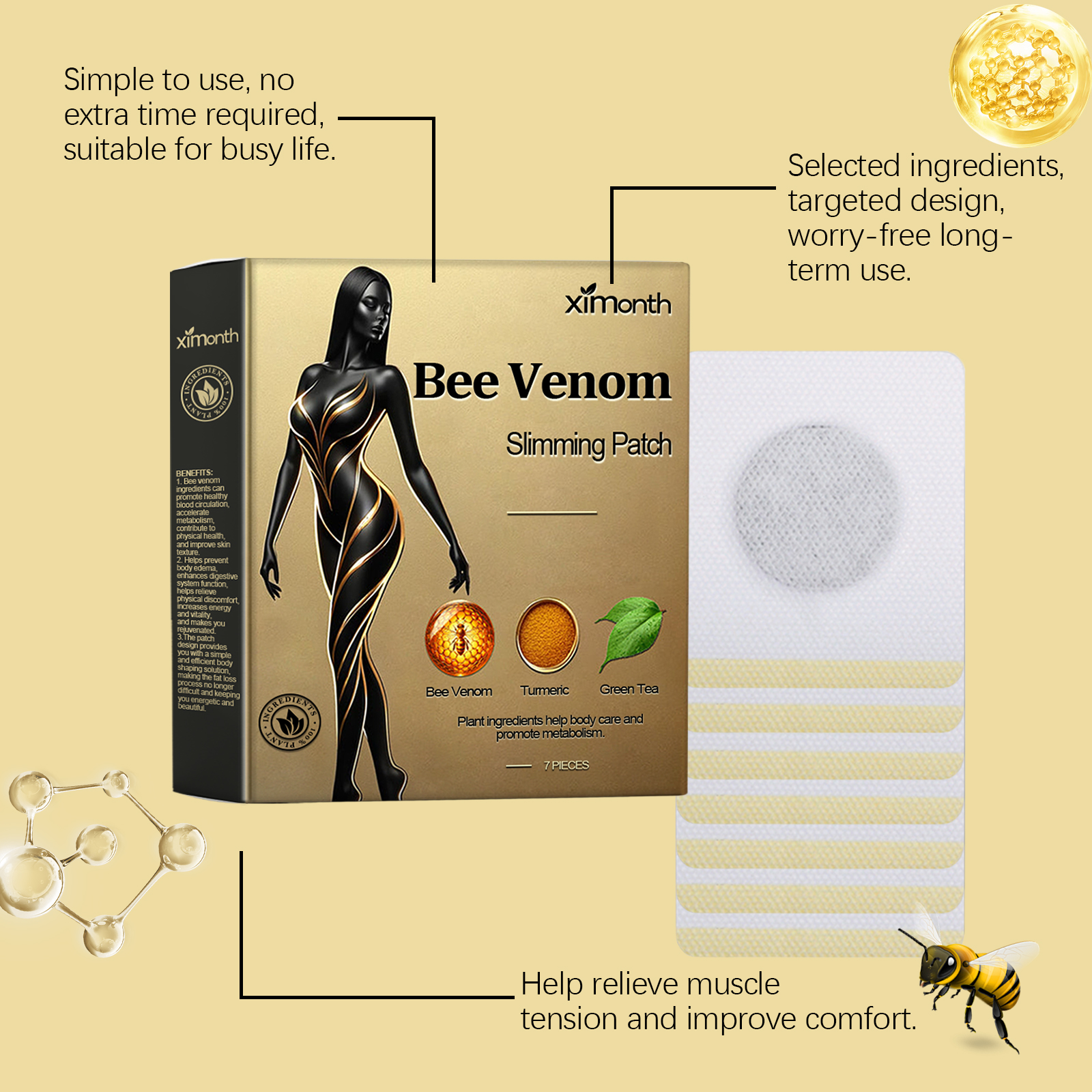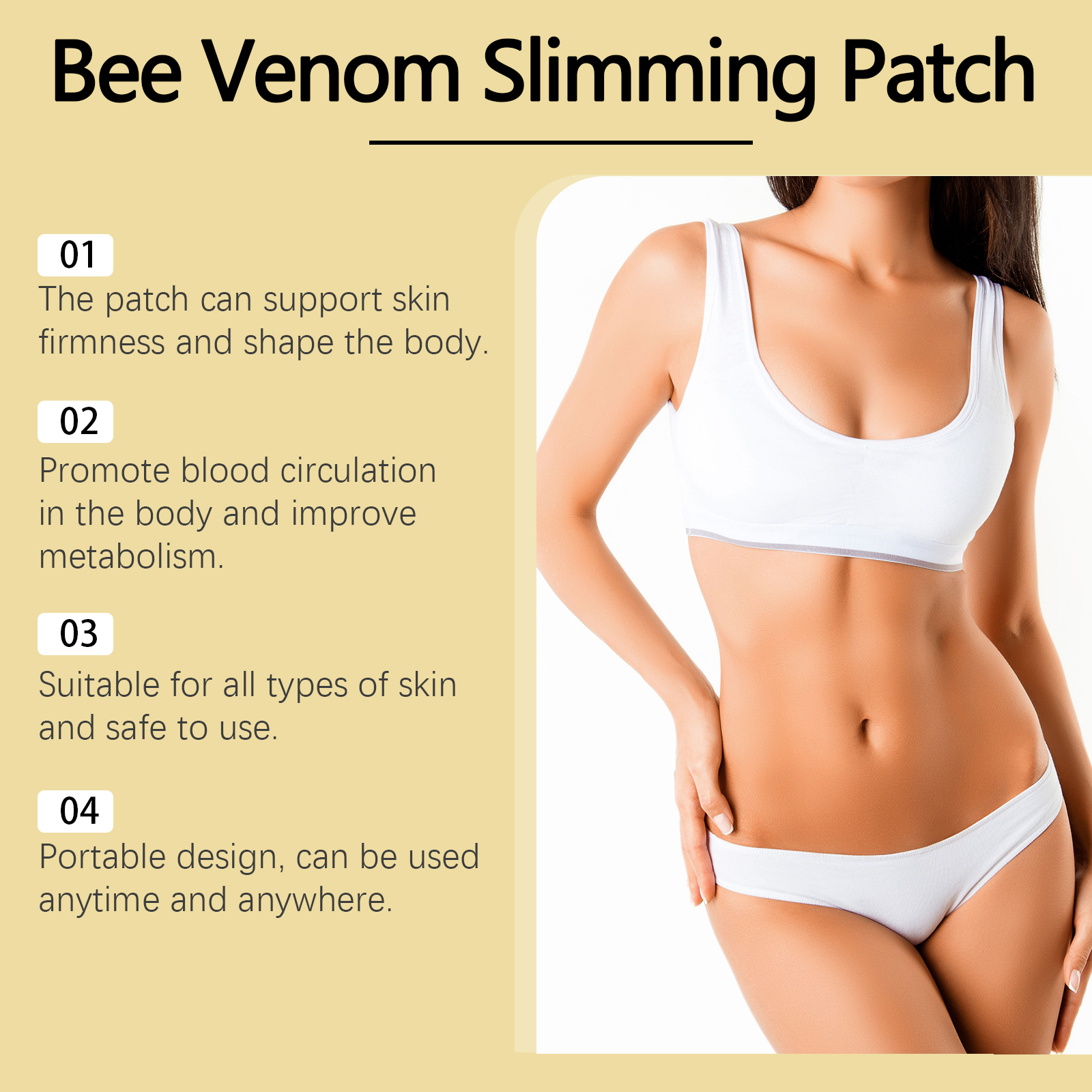 Our bee venom slimming patches contain bee venom and mugwort extract, which can promote blood circulation and improve metabolism. They are easy to use: simply clean and dry the skin, apply one patch to the skin, gently press the patch to ensure it adheres, and leave it on for 3-4 hours before removing it. It is suitable for all skin types and safe to use. The portable design allows for use anytime, anywhere.