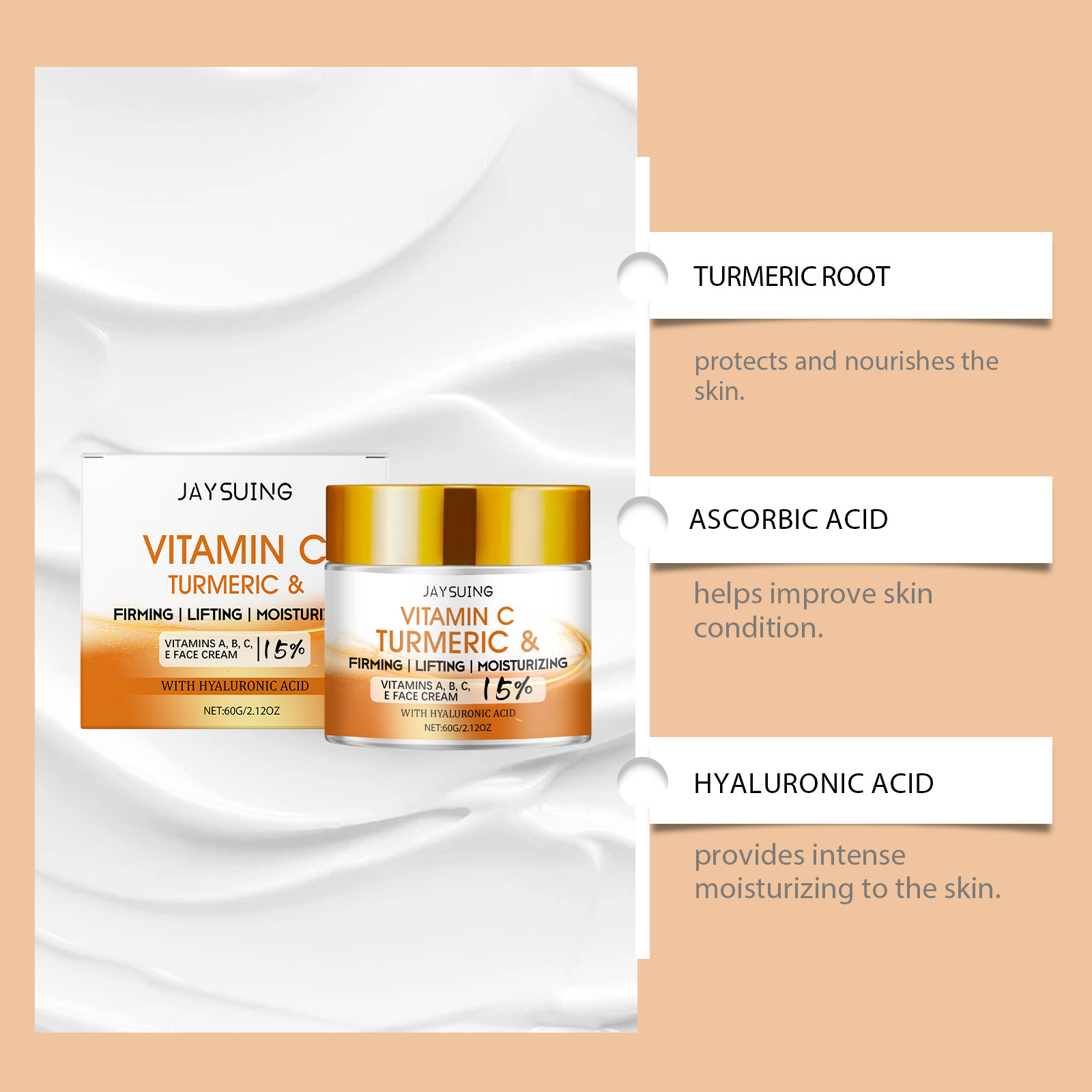 Jaysuing Vitamin C & Turmeric Face Cream – Moisturizing, Firming & Lifting